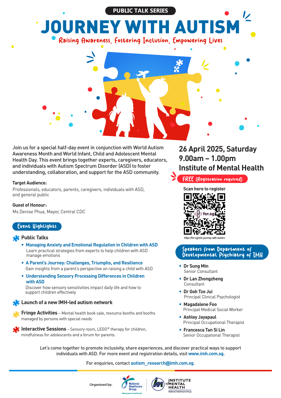 LEGO® Therapy Workshop: Let’s Play! (Session 1) Tickets, Sat, Apr 26, 2025 at 9:30 AM | EventbriteLEGO® Therapy Workshop: Let’s Play! (Session 2) Tickets, Sat, Apr 26, 2025 at 10:00 AM | EventbriteMindfulness for Youth: Let’s Chill! Tickets, Sat, Apr 26, 2025 at 11:00 AM | EventbriteParents’ Forum: Let’s Talk! Tickets, Sat, Apr 26, 2025 at 12:00 PM | Eventbrite