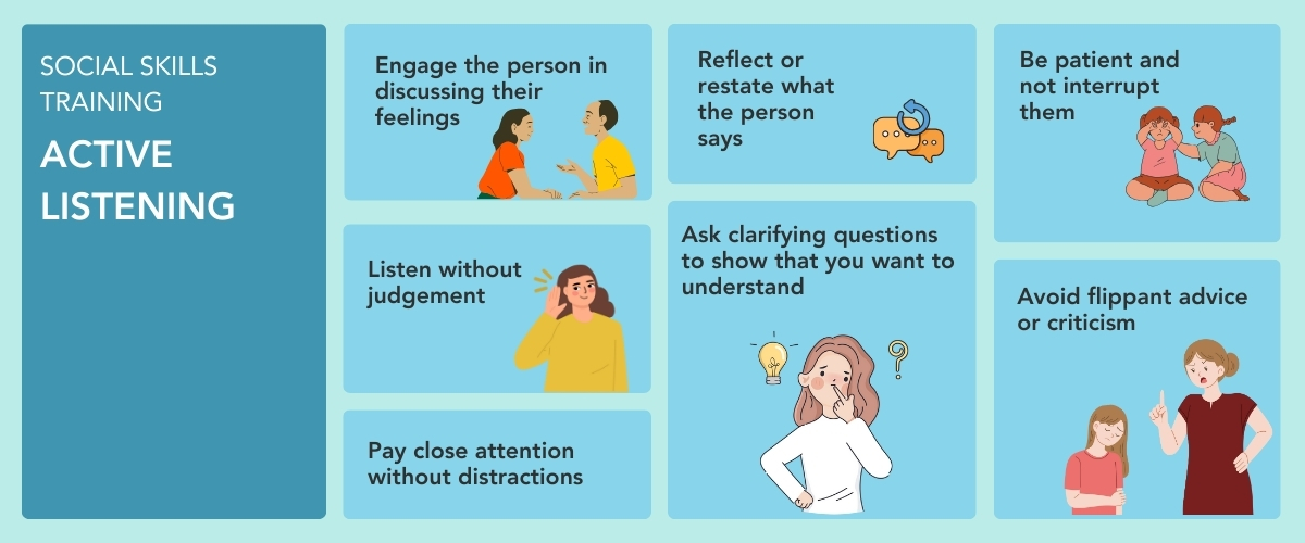 Individuals lacking social skills may struggle with aspects like making eye-contact and asserting themselves. They may find it hard to start and maintain conversations, or respond to compliments.
