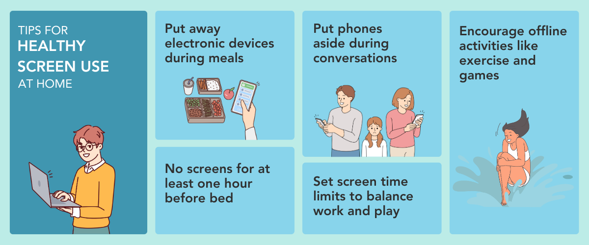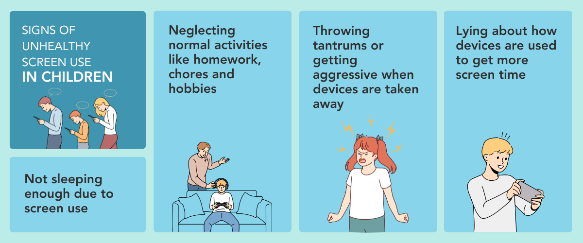 If these behaviours sound familiar, start by having an open discussion with the child about their screen use habits. Work together to create a realistic schedule that balances screen time with other activities. Include outdoor play, study time, and sleep. Revisit and adjust the plan regularly.